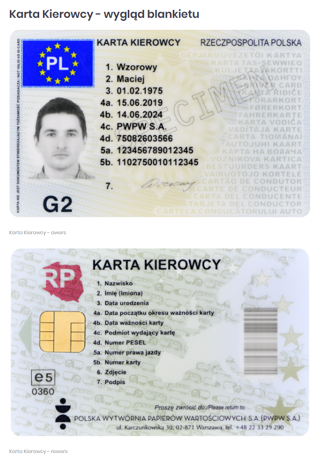 - Kierowca jest upoważniony do korzystania wyłącznie z karty kierowcy spersonalizowanej przy użyciu jego danych osobowych.