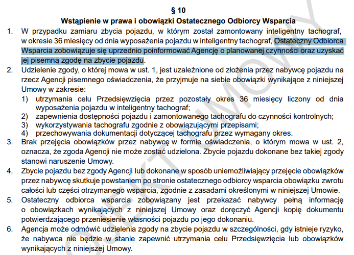 Pełna treść projektu umowy znajduje się na dole strony: https://www.gov.pl/web/arimr/inwestycje-w-zakresie-bezpieczenstwa-transportu—wyposazenie-pojazdow-w-inteligentny-tachograf